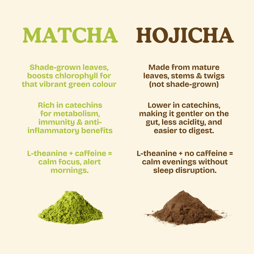 Slow-roasted hojicha unfolds with warm layers of toasted sesame and kinako, creating a calming embrace in every sip. Low in caffeine and gentle on digestion, it’s perfect for winding down or savoring mindful evenings. Enriched with type I marine collagen, this brew offers a quiet moment of renewal with every cup.